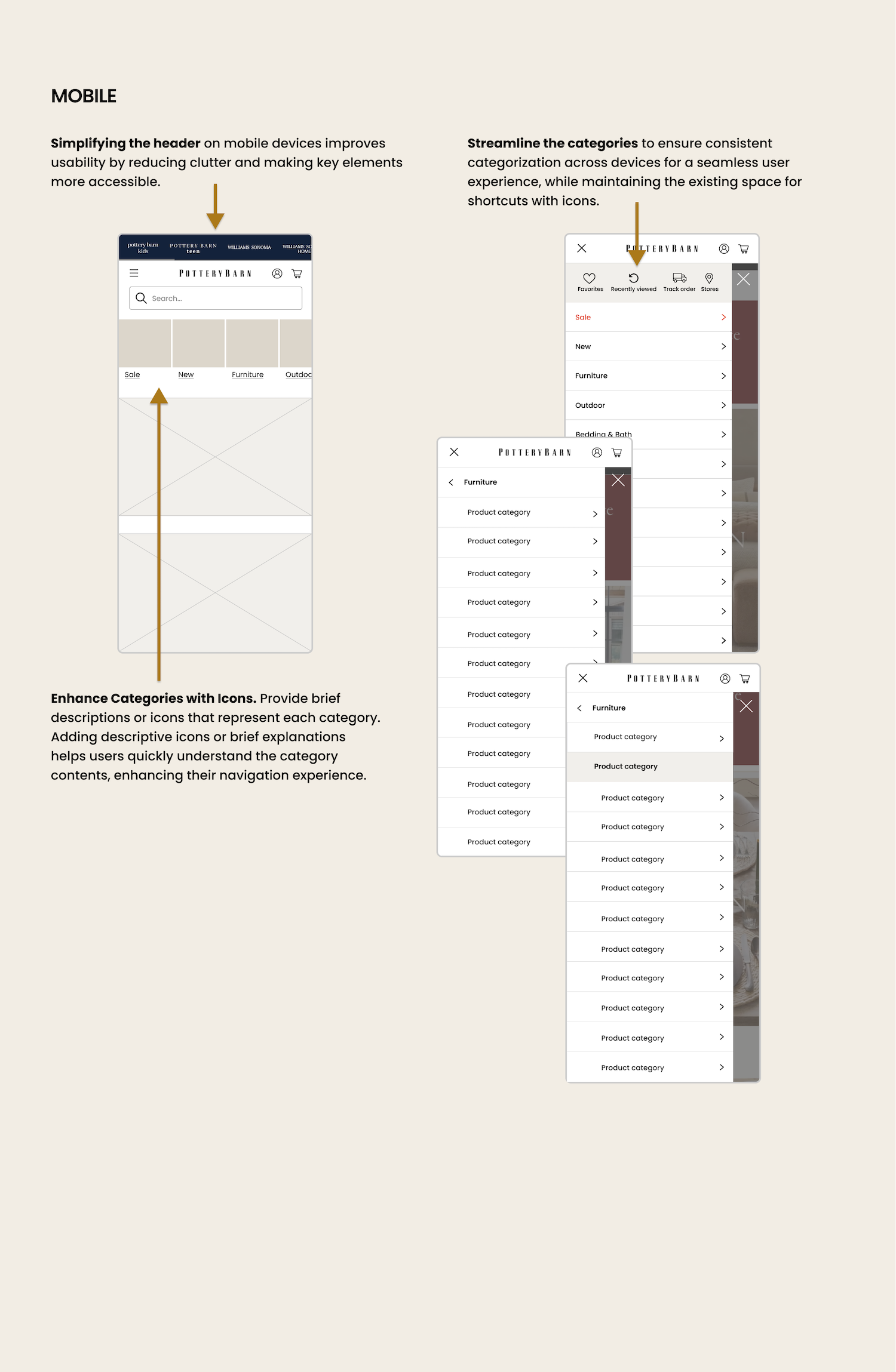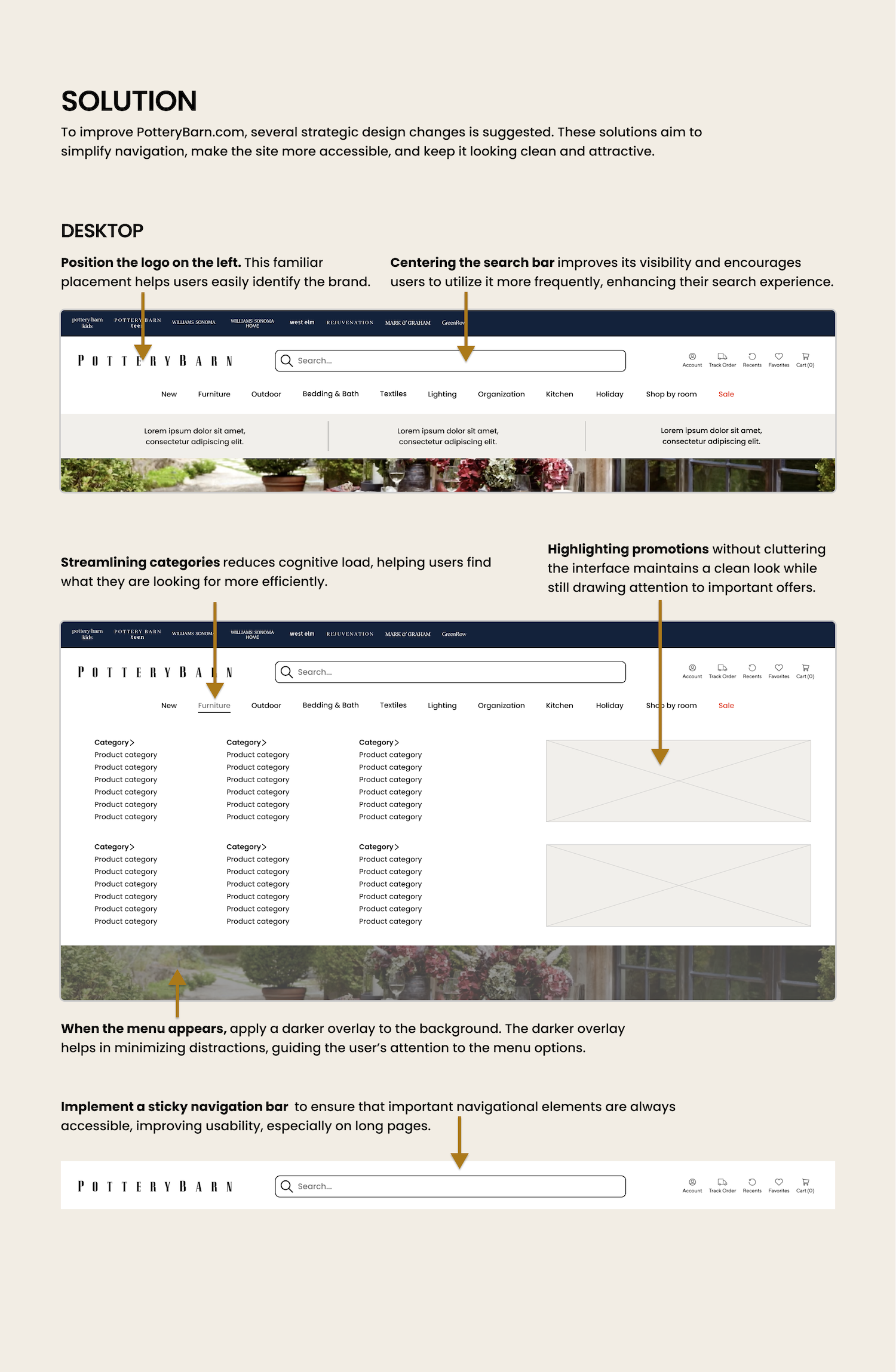 This case study explores a redesign of PotteryBarn.com, with a focus on making the shopping experience easier to understand and navigate.